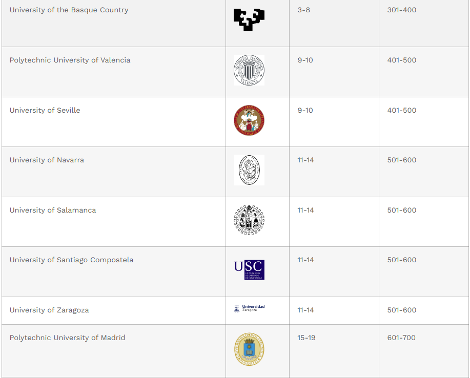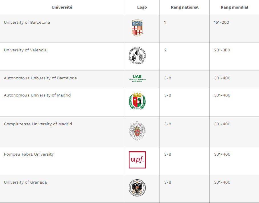 Ci-dessous quelques unes des meilleures universités espagnoles pour les étudants internationnaux.