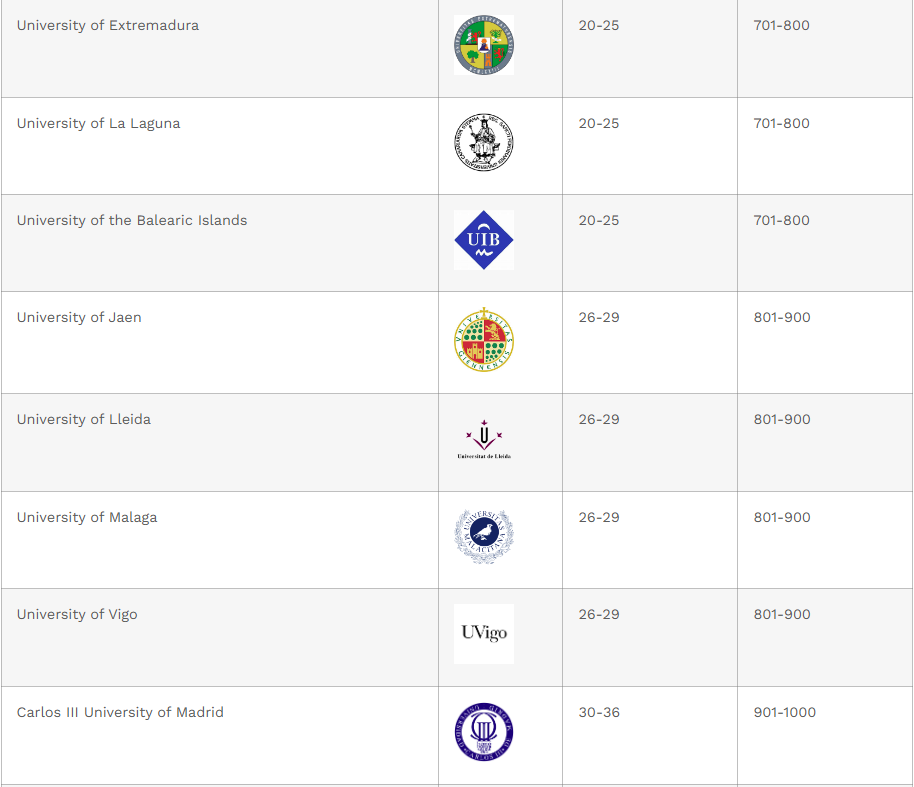 Selon le ShanghaiRanking Consultancy (ARWU) 2025 (« classement de Shanghai ») : 36 universités espagnoles sont dans le top 1 000 mondial.